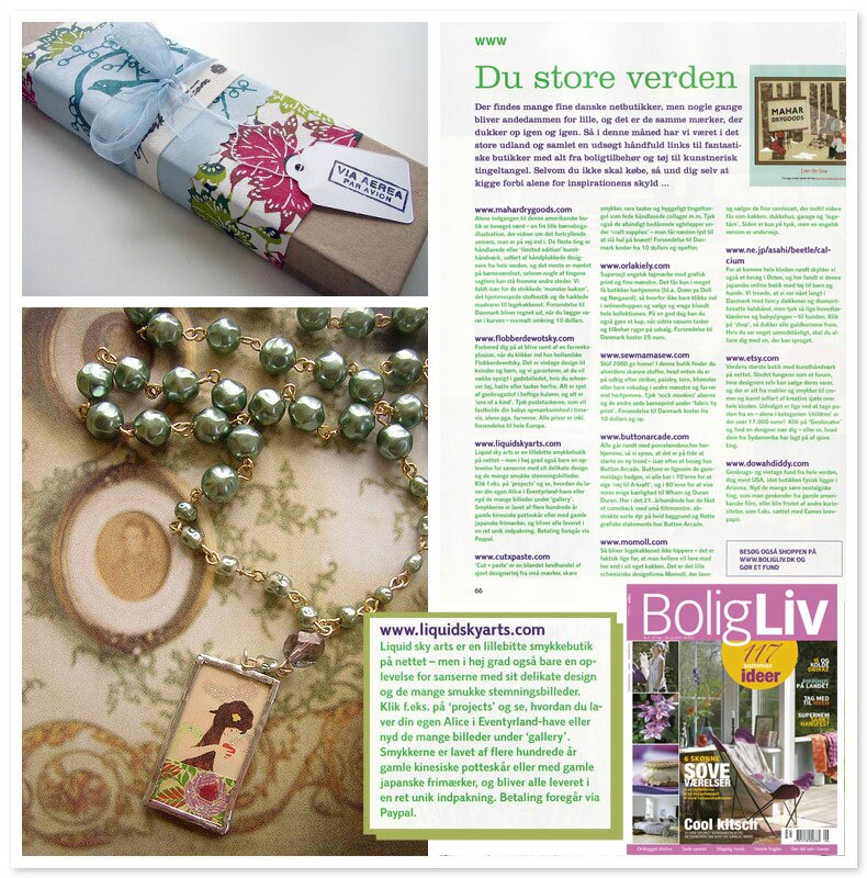 My heart completely skipped a beat this afternoon when I opened up my mailbox to find the issue of BoligLiv Liquid Sky Arts was mentioned in last month. Thanks so much Kirsten for sending it all the way from Denmark!